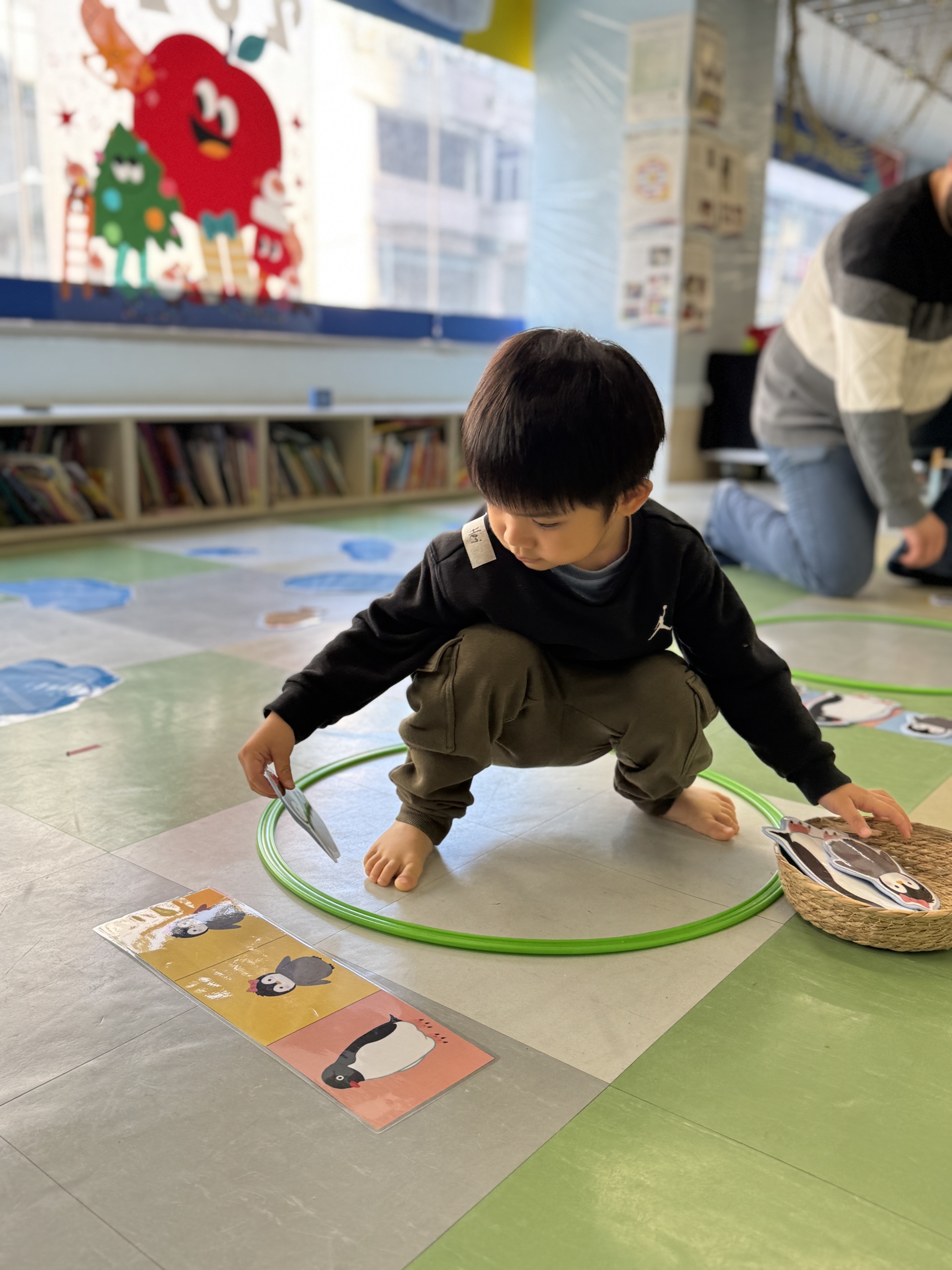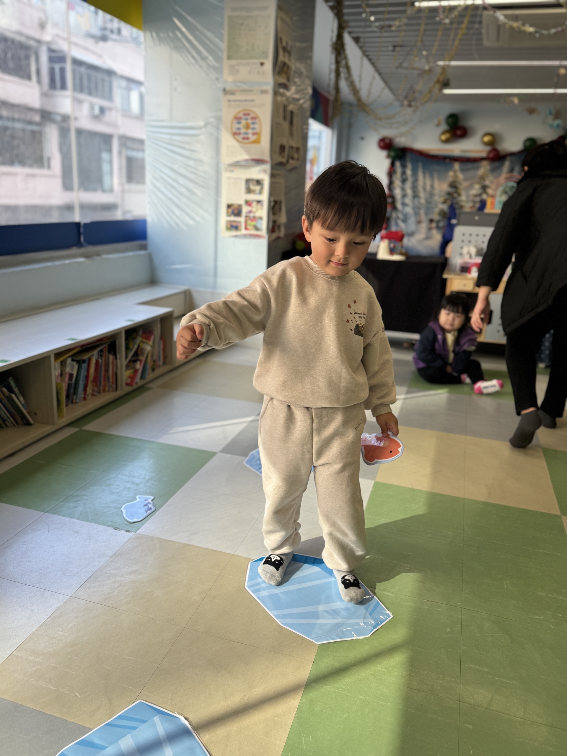 今天, 我們一起揭開了冰雪世界,化身為 「極地小科學家」,先從認識北極食物鏈開始,接著在冰原上展開真正的挑戰!我們踏上「浮冰」,穩住平衡,合力釣起一條條「小魚」,親手餵養等待中的企鵝夥伴。我們亦利用紙碟,黑色顏料和棉花等材料製造出獨一無二的企鵝。