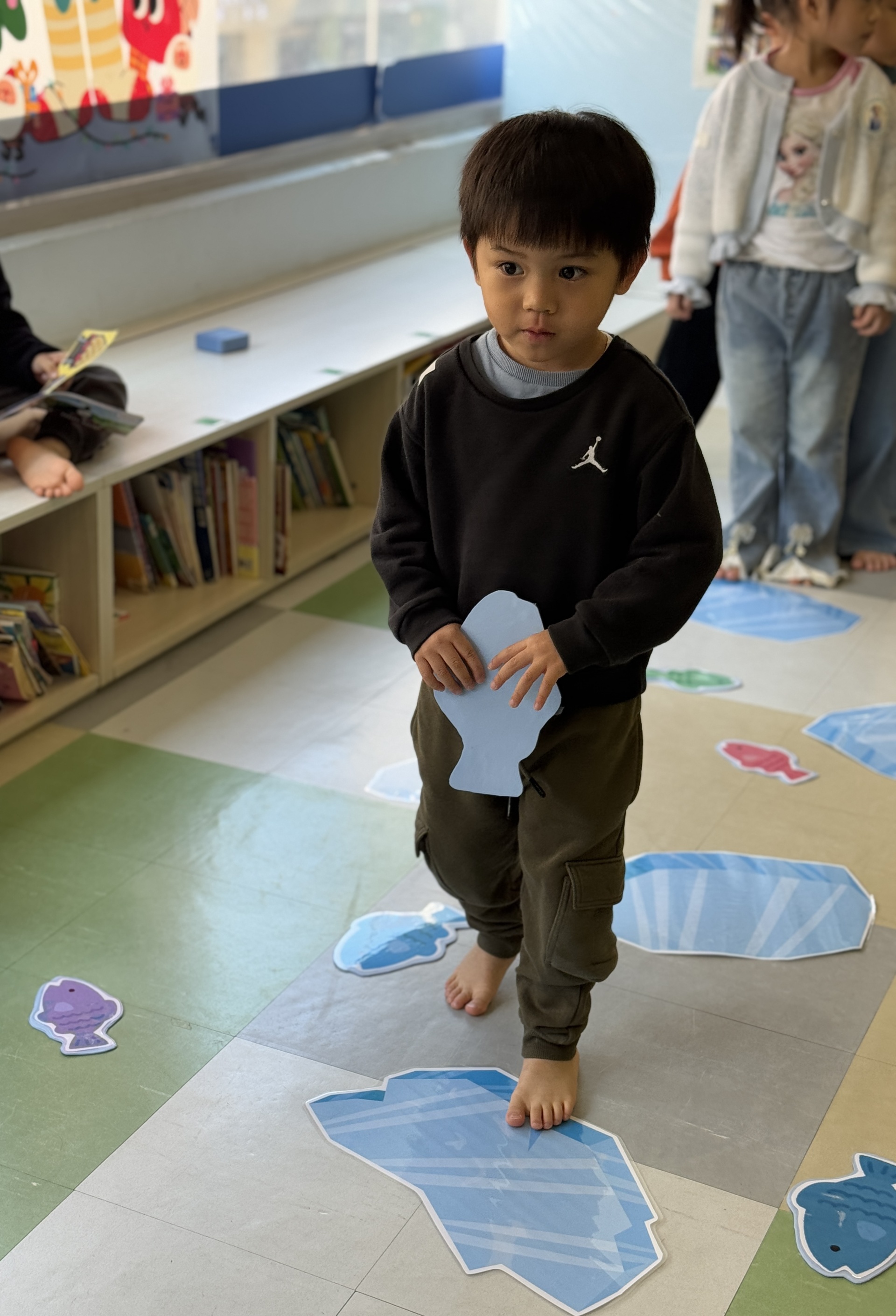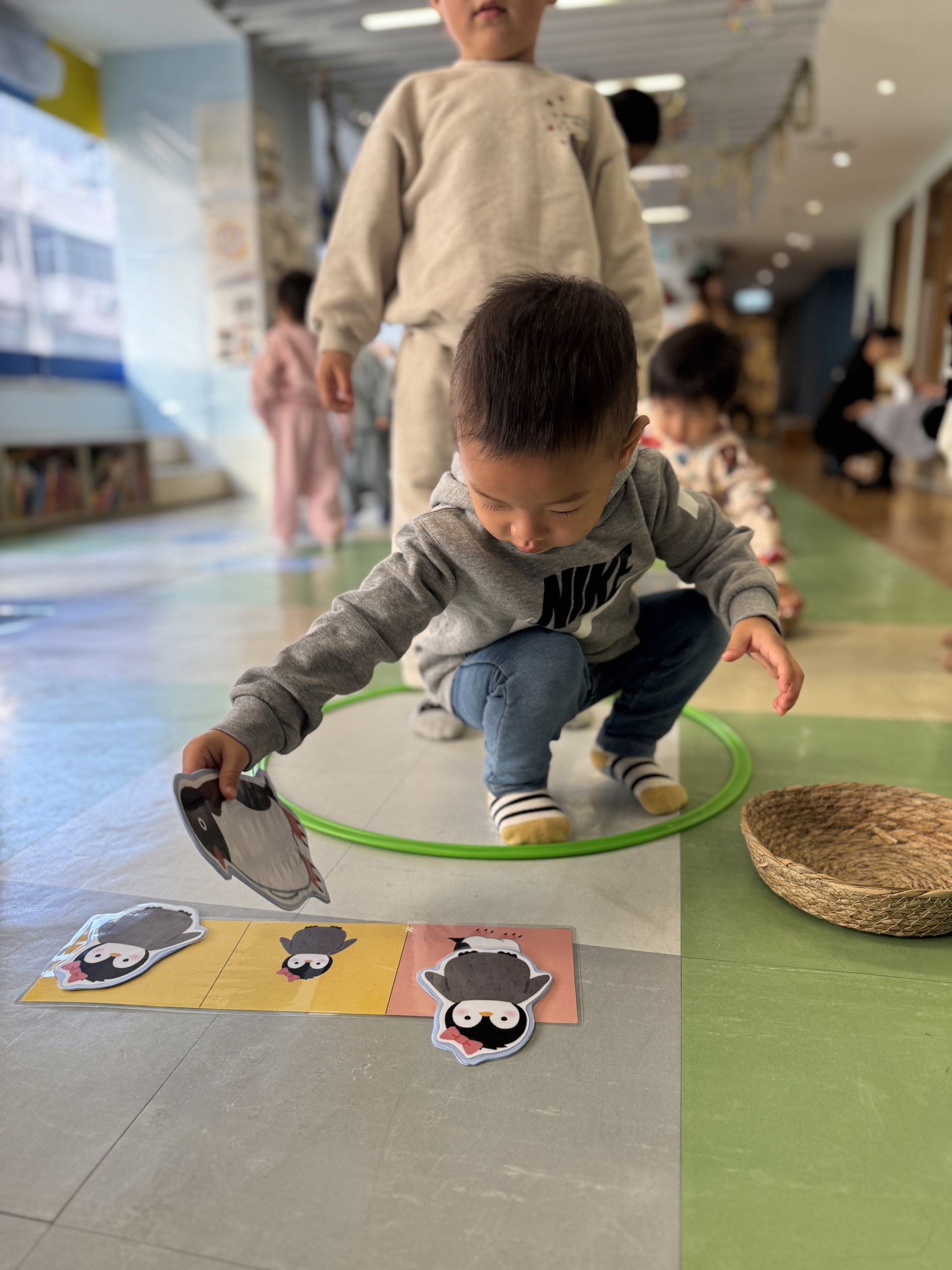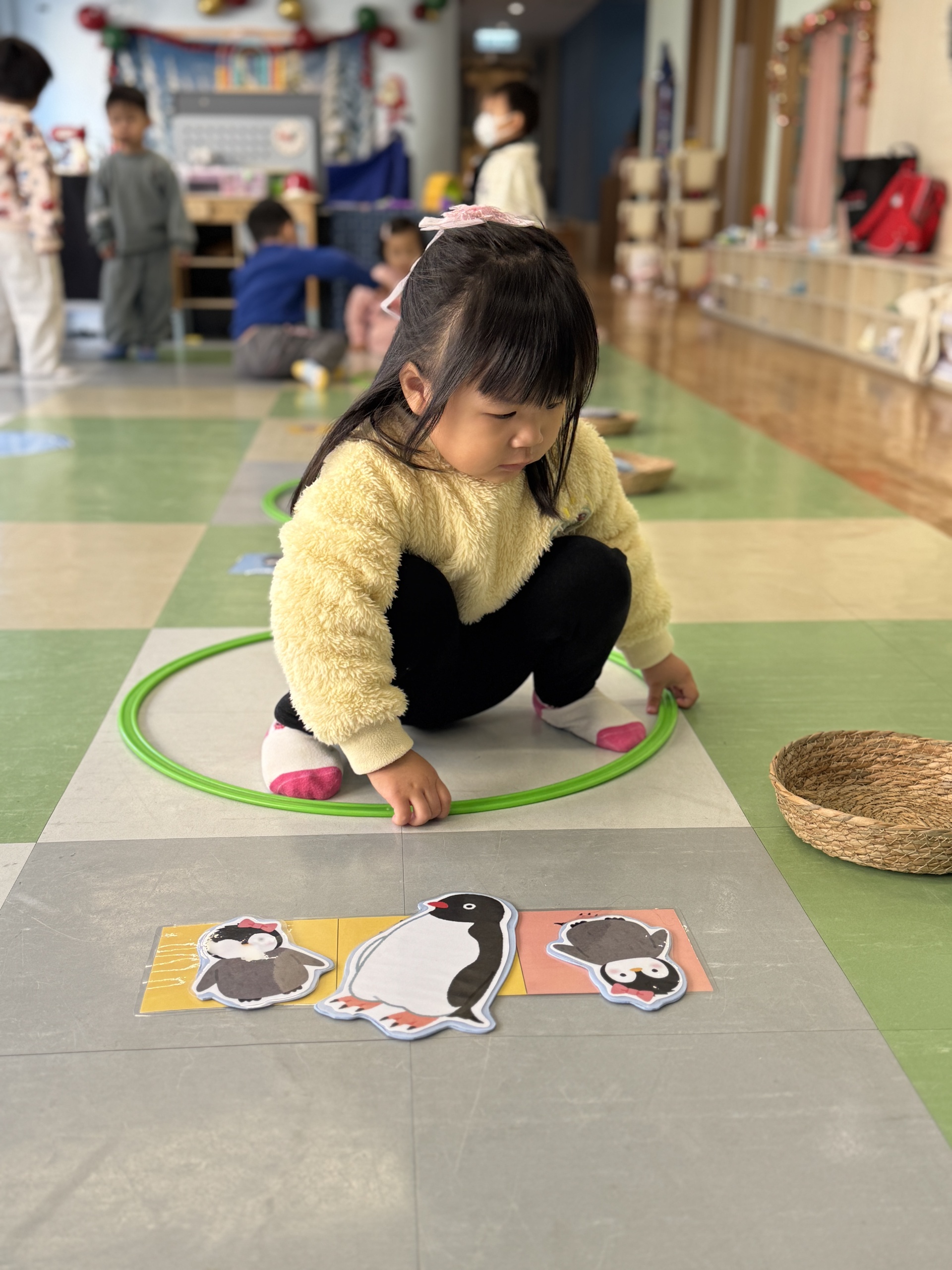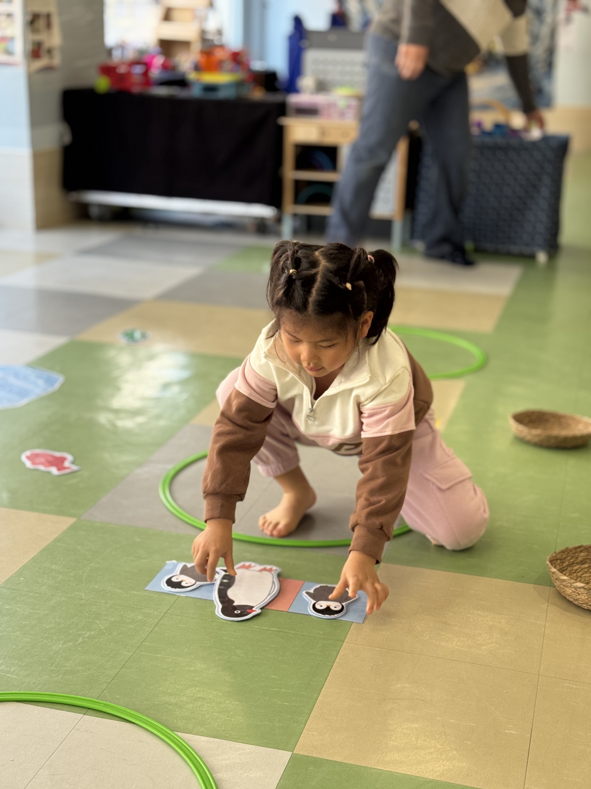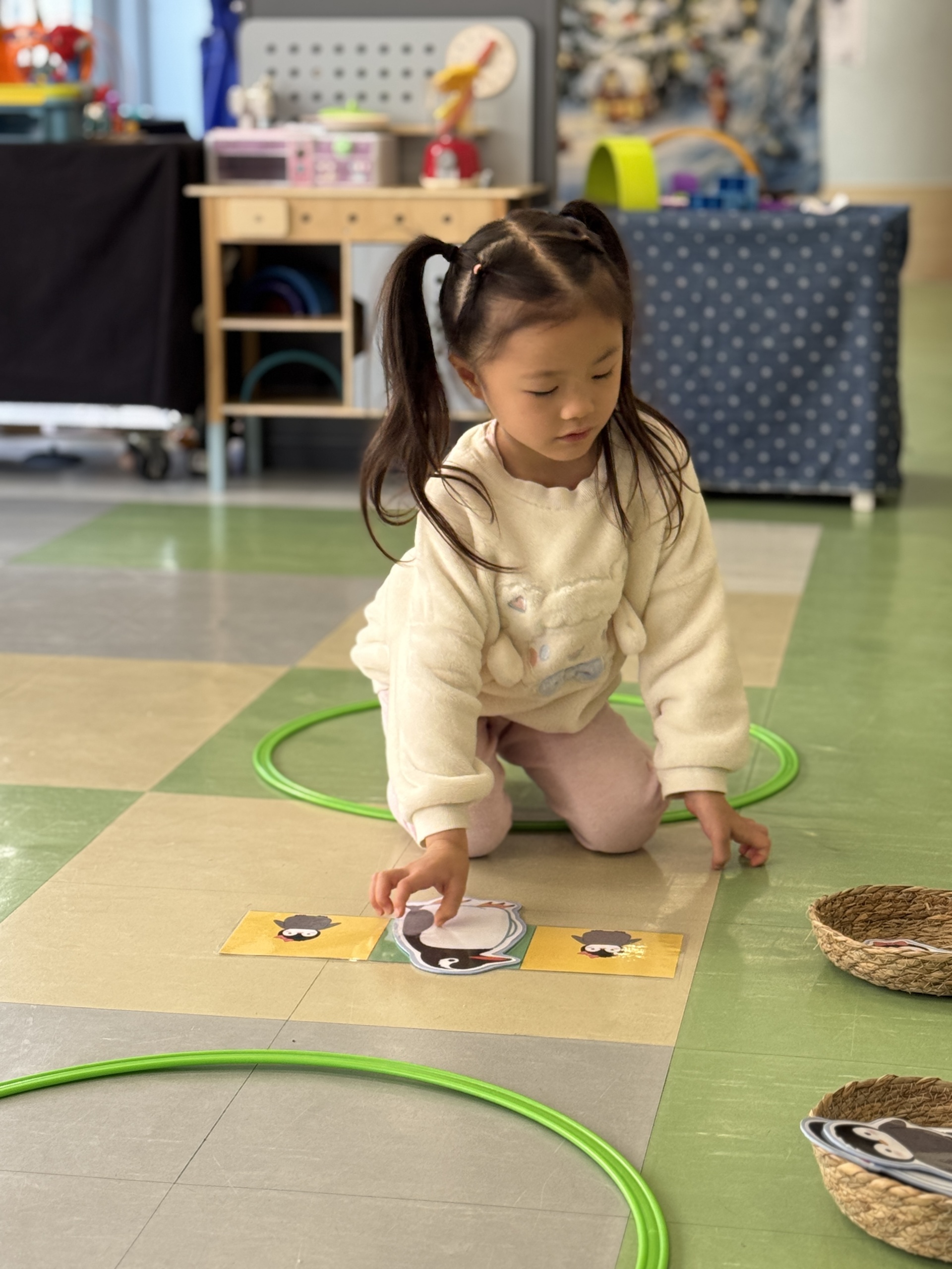 Today, we had an exciting Arctic adventure filled with learning, creativity, and teamwork. Our little explorers began their journey as polar scientists, discovering the Arctic food chain. The real adventure began on the icy seas! We carefully stepped from "iceberg" to "iceberg" as they "fished" for little fishes to feed their hungry penguin friends. Furthermore, we also used paper plates, black paint and cotton balls to make our own unique penguins.