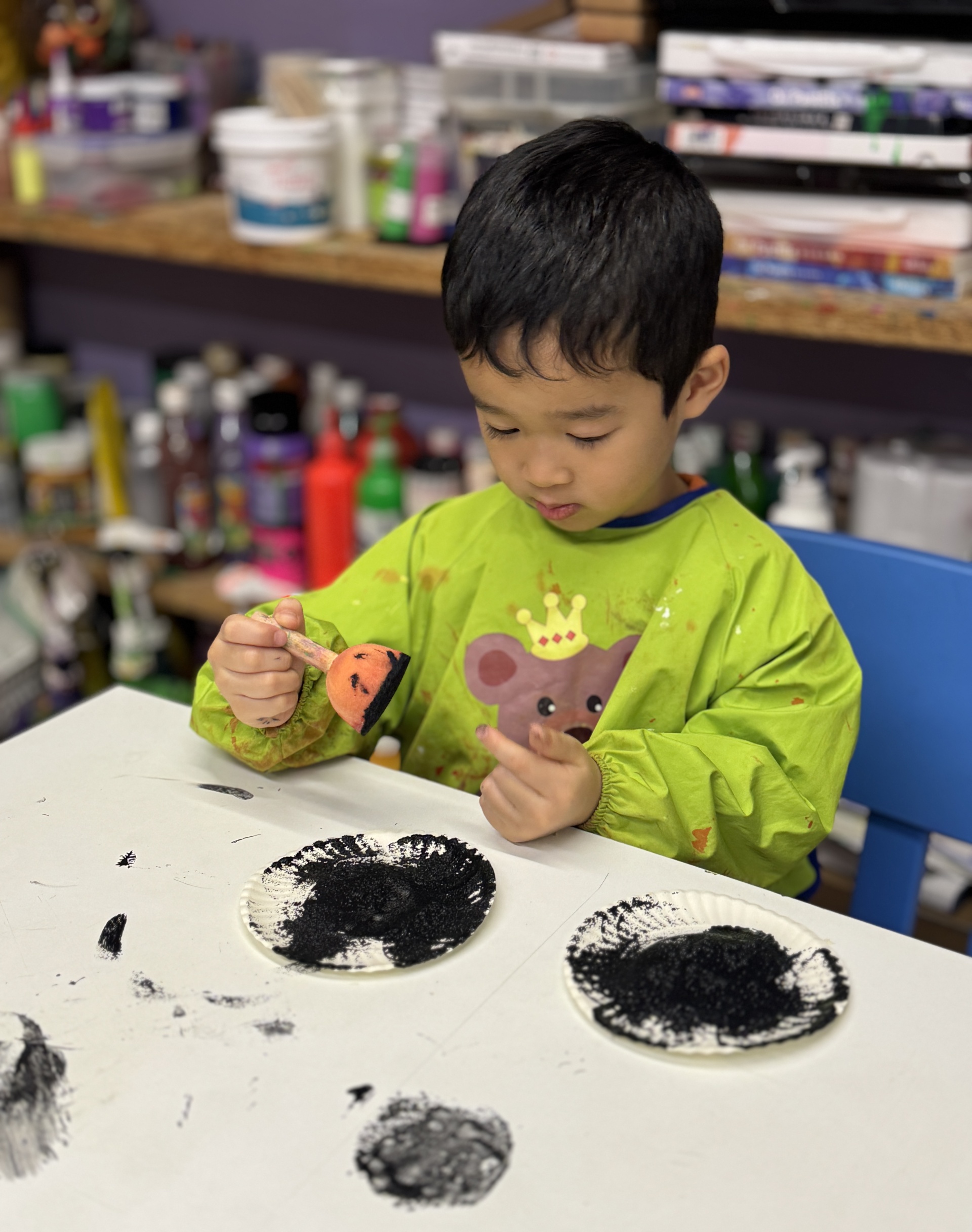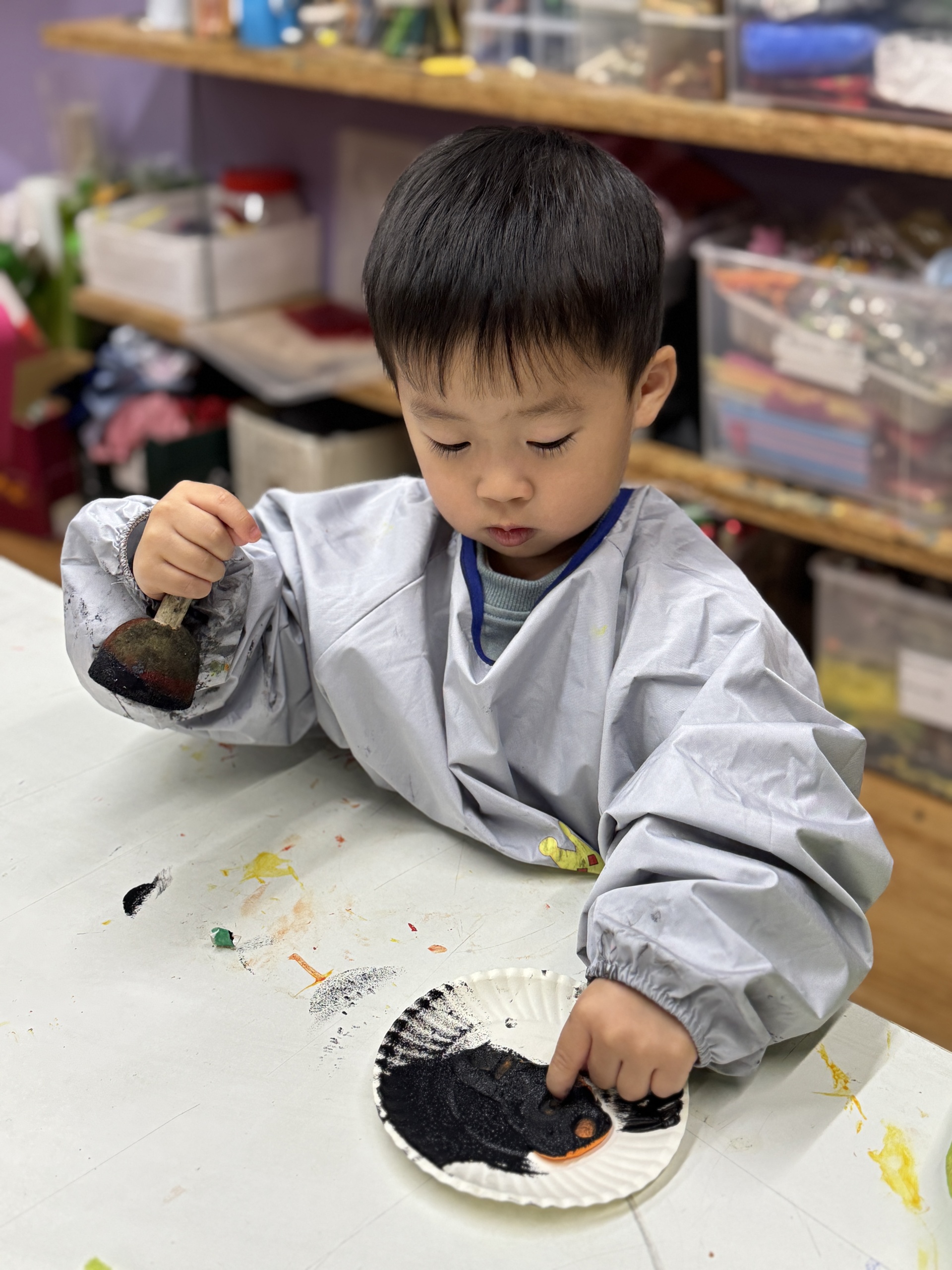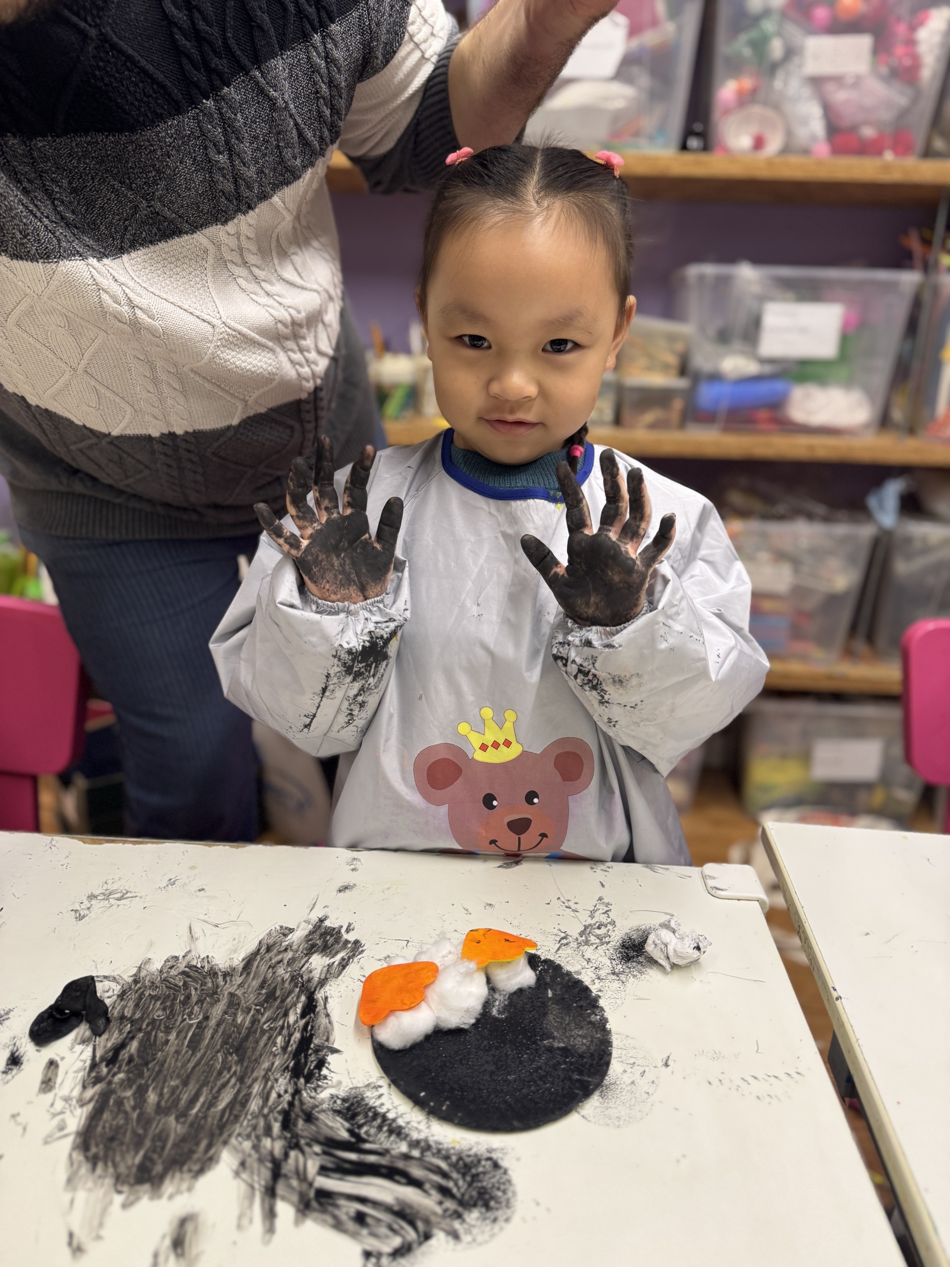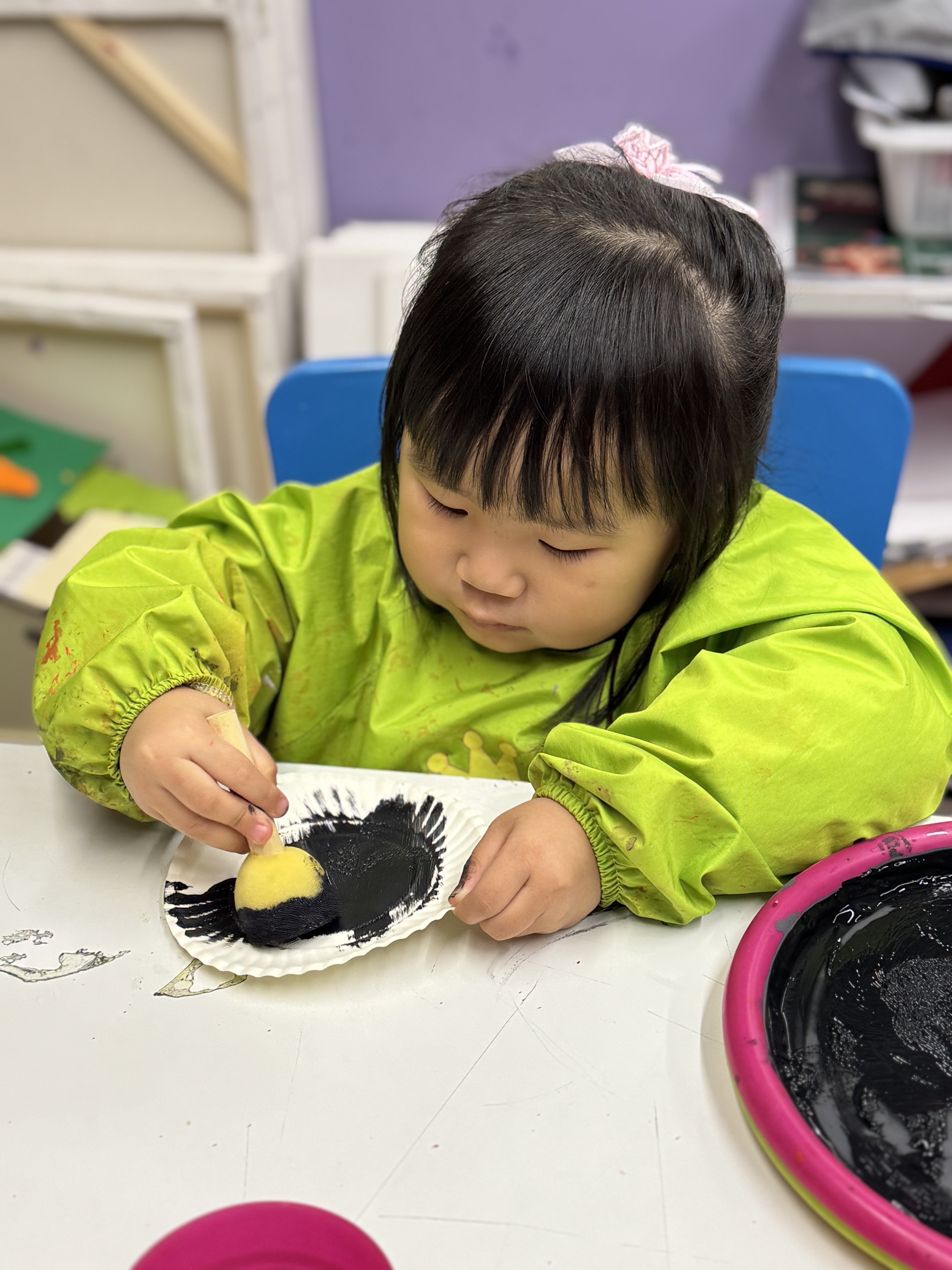 Today, we had an exciting Arctic adventure filled with learning, creativity, and teamwork. Our little explorers began their journey as polar scientists, discovering the Arctic food chain. The real adventure began on the icy seas! We carefully stepped from "iceberg" to "iceberg" as they "fished" for little fishes to feed their hungry penguin friends. Furthermore, we also used paper plates, black paint and cotton balls to make our own unique penguins.